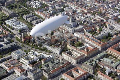 - Verkehr Ballon Luftaufnahmen Oberbayern München Luftbild Zeppelin Haus Häuser Wohnhaus Wohnhäuser Gebäude Wohngebäude Themen