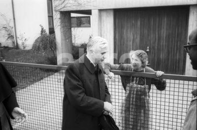 religion Christianity portrait Professor Dr. Joseph Ratzinger (middle) vice president University of Regensburg since 28.05.1977 archbishop archbishopric Munich-Freising 27. 06.1977 cardinal 19.04.2005 Pope Benedikt XVI Rome take leave his sister Maria (right side) native place hometown city Pentling near (only black and white) subjects christianity people international
