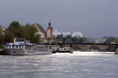 - Land Deutschland Stadt Regensburg Verkehr Schifffahrt Wetter Gewitter Fluss Donau Ufer Donauufer Stadtansicht Turm Türme Salzstadel Tourismus Eiserne Brücke Steinerne Themen Länder