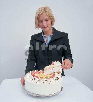 nutrition food groceries woman layer cake piece slice first cut subjects nutrition/food