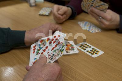 - Freizeit Vergnügen Schafkopfen Schafkopfkarte Schafkopfkarten Kartenspiel Karten spielen Hand Hände Spielkarte Karte Trumpf ausspielen Themen