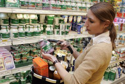nutrition food environment consumer protection economy shopping organic wholefood-supermarket wholefood supermarket basic-supermarket eco ecology ecological woman bag filled yoghurt multideck cabinet fridge shelf to choose inform select subjects nutrition/food consumer protection