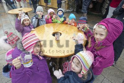 nutrition beverage drinks spare time leisure pleasure season winter people child children kid kids girl girls boy boys hat hats hood hoods coat coats jacket jackets drinking thirst thirsty punch kiddie fruit Christmas cup Christkindlmarkt Christkindelmarkt market subjects beverage/drinks spare time/leisure time pleisure/fun
