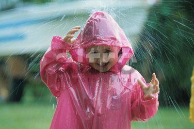- Mensch Kind Mädchen Wetter Regen Regentropfen Regenmantel lachend Themen