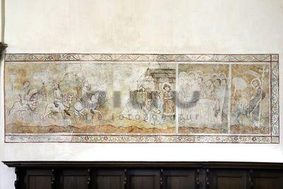 architecture building historical religious former minster Our blessed Lady or "Maria in abandonment" der Verlassenheit" Regensburg rural district Adlersberg nave mural painting illustration three parts the homage to holy kings Maria's death meeting of revived with Maria von Magdala south side Gothic gothic early 14th century Middle Ages subjects building historical building religious county/district